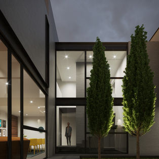 El proyecto se ubica en un terreno rectangular de 216 metros cuadrados, con una fachada de 9 metros. Desde un principio, el proyecto abordó dos necesidades fundamentales que marcaron su diseño. La primera de ellas consistía en la integración de una oficina, permitiendo a los padres recibir a sus clientes sin comprometer la privacidad de la familia. Por otro lado, la seguridad en la zona fue un factor determinante. La arquitectura asume la responsabilidad de generar un cambio en este aspecto, promoviendo la construcción de calles bien iluminadas que permiten a los vecinos observar la actividad en la vía pública desde sus hogares. Este enfoque condicionó el diseño para quee los vehículos no se apropiaran de la totalidad del frente del proyecto.